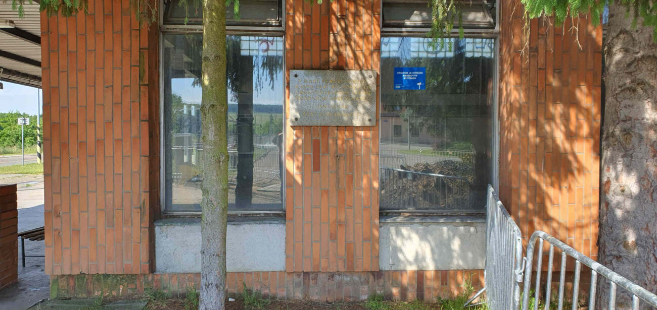 Pamětní deska připomínající padlého železničáře se nachází na boku železniční stanice při příchodu.