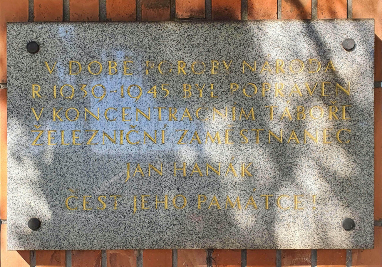 Pamětní deska připomínající padlého železničáře se nachází na boku železniční stanice při příchodu.
